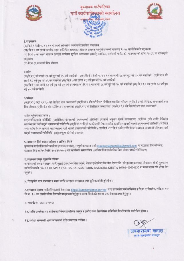 सेवा करारमा कर्मचारी पदपूर्ति गर्ने सम्बन्धी सूचना !!!