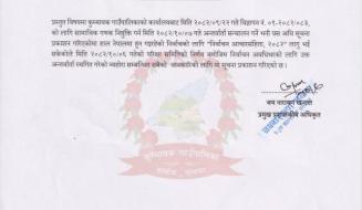 जिम्मेवार अधिकारीः- प्रमूख प्रशासकीय अधिकृत/लेखापाल/ईन्जिनियर/सब-इन्जिनियर