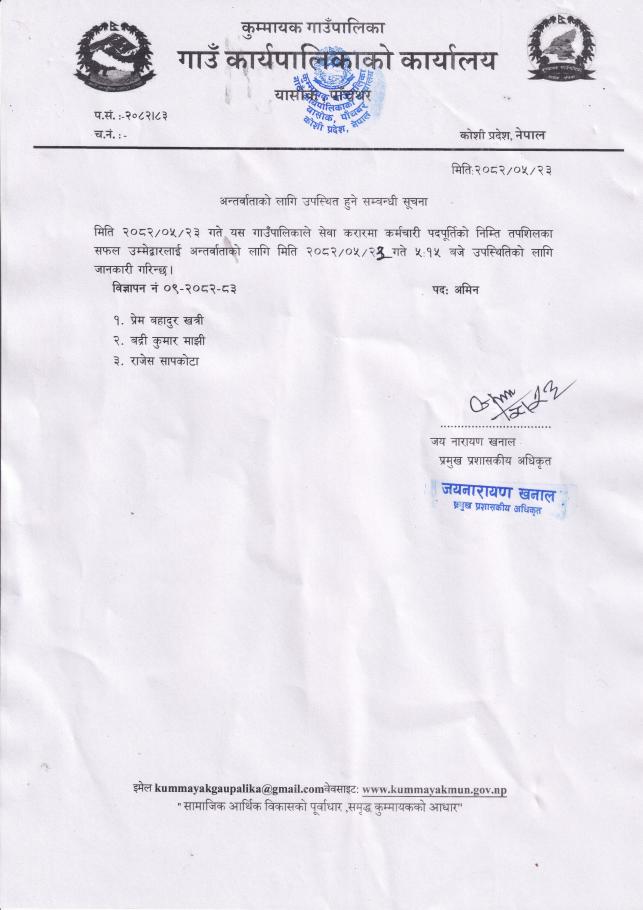 अन्तर्वाताको लागि उपस्थित हुने सम्बन्धी सूचना !!!