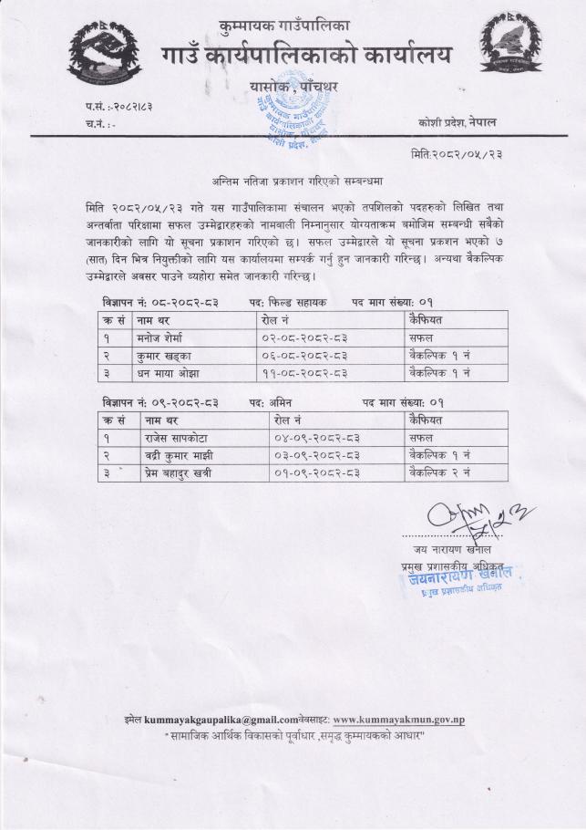 » अन्तिम नतिजा प्रकाशन गरिएको सम्बन्धमा