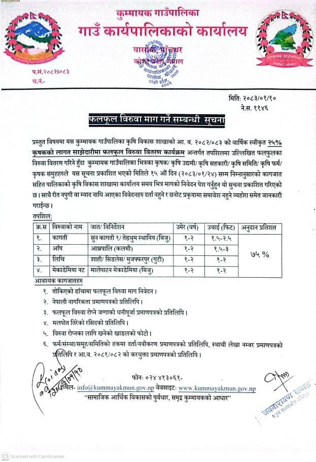 » फलफुल बिरुवा माग गर्ने सम्बन्धी सूचना !!!