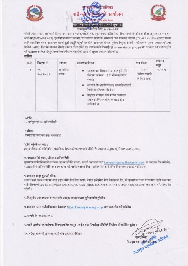 सामाजिक गणक पदपुर्ती गर्ने सम्बन्धी सूचना !!!