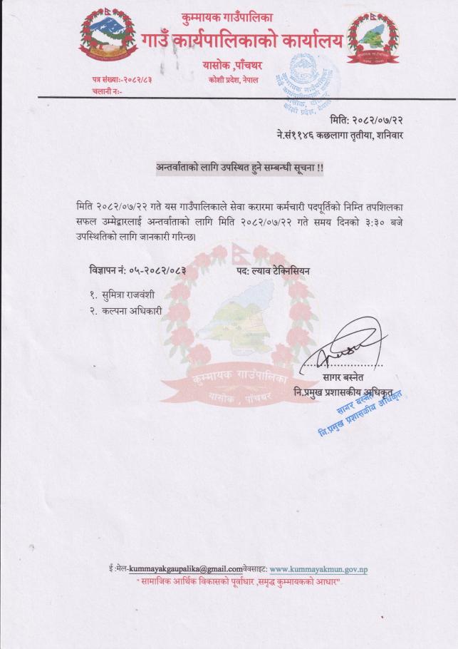 अन्तर्वाताको लागि उपस्थित हुने सम्बन्धी सूचना !!!
