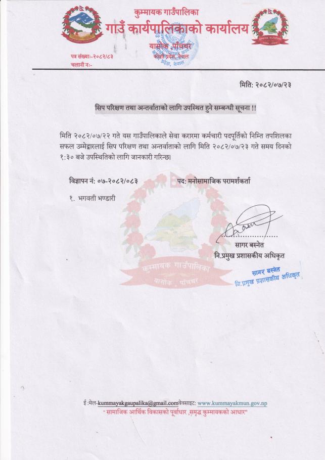 अन्तर्वाताको लागि उपस्थित हुने सम्बन्धी सूचना !!!