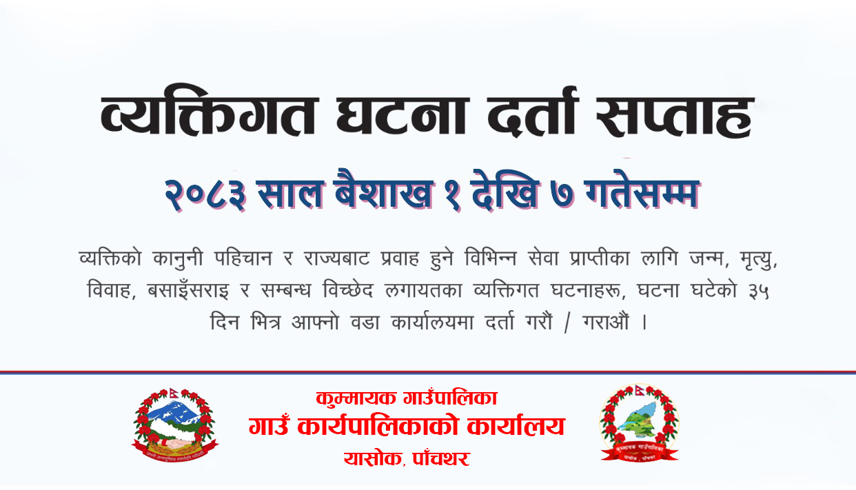 » व्यक्तिगत घटना दर्ता सप्ताह अभियान २०८३ सम्बन्धी सूचना !!!